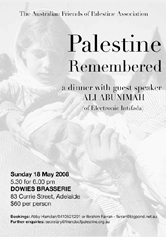 PALESTINE Remembered Dinner with Guest speaker Ali Abunimah 18 May 2008 5:30 for 6:00pm