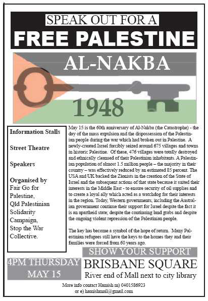 SPEAK OUT FOR A FREE PALESTINE 15 May 2008
