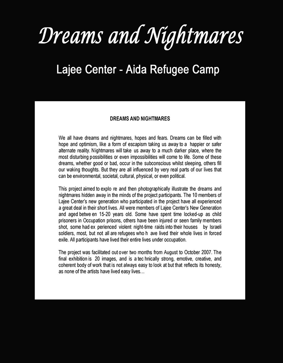I have nightmares about being taken away to an Occupation prison. During the nights the soldiers come to the camp and arrest many children. This means that we cannot continue our studies. Mohammad Walid Al Azzeh